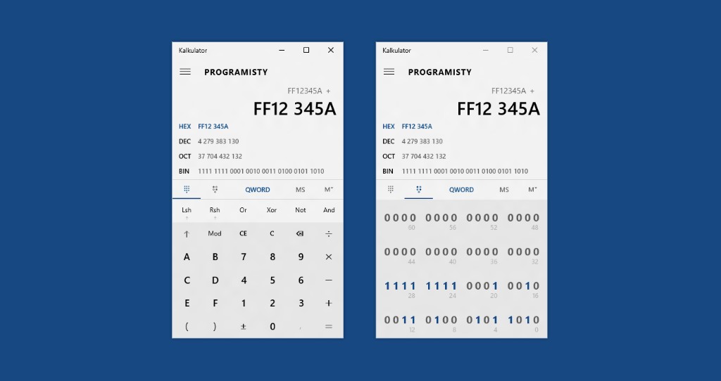 Kalkulator systemowy w Windowsie to nie jest kalkulator prosty. Po przełączeniu na widok Programisty otrzymujesz narzędzie, które pozwala wykonywać obliczenia w czterech systemach liczbowych: